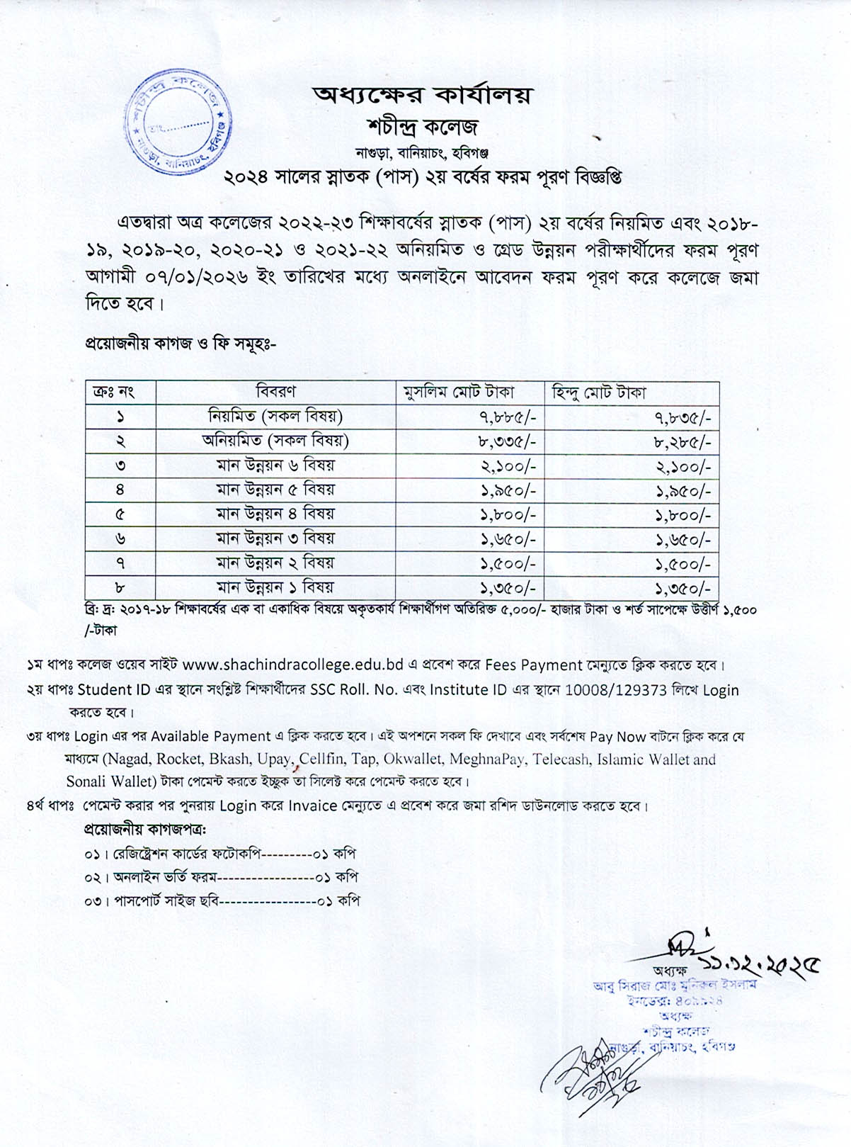 Warning: "continue" targeting switch is equivalent to "break". Did you mean to use "continue 2"? in /home/hostvdwb/public_html/shachindracollege/sites/all/modules/date/date_views/includes/date_views_fields.inc on line 85 ২০২৪ সালে স্নাত (পাস) ২য় বর্ষ ফরম পূরণ নোটিশ | Shachindra College