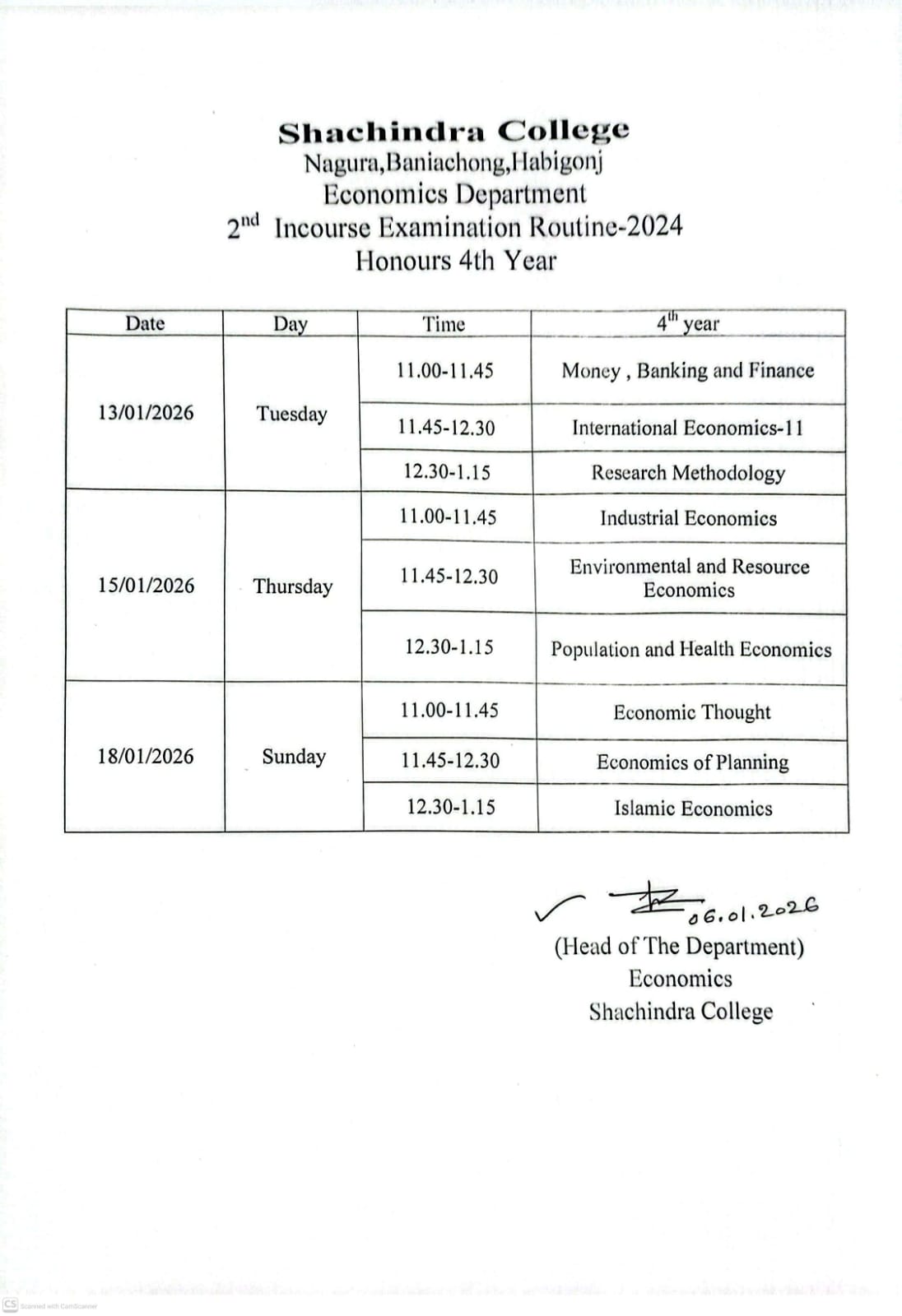 স্নাতক (সম্মান) ৪র্থ বর্ষের ২য় ইনকোর্স পরীক্ষা রুটিন-২০২৪ (অর্থনীতি বিভাগ)