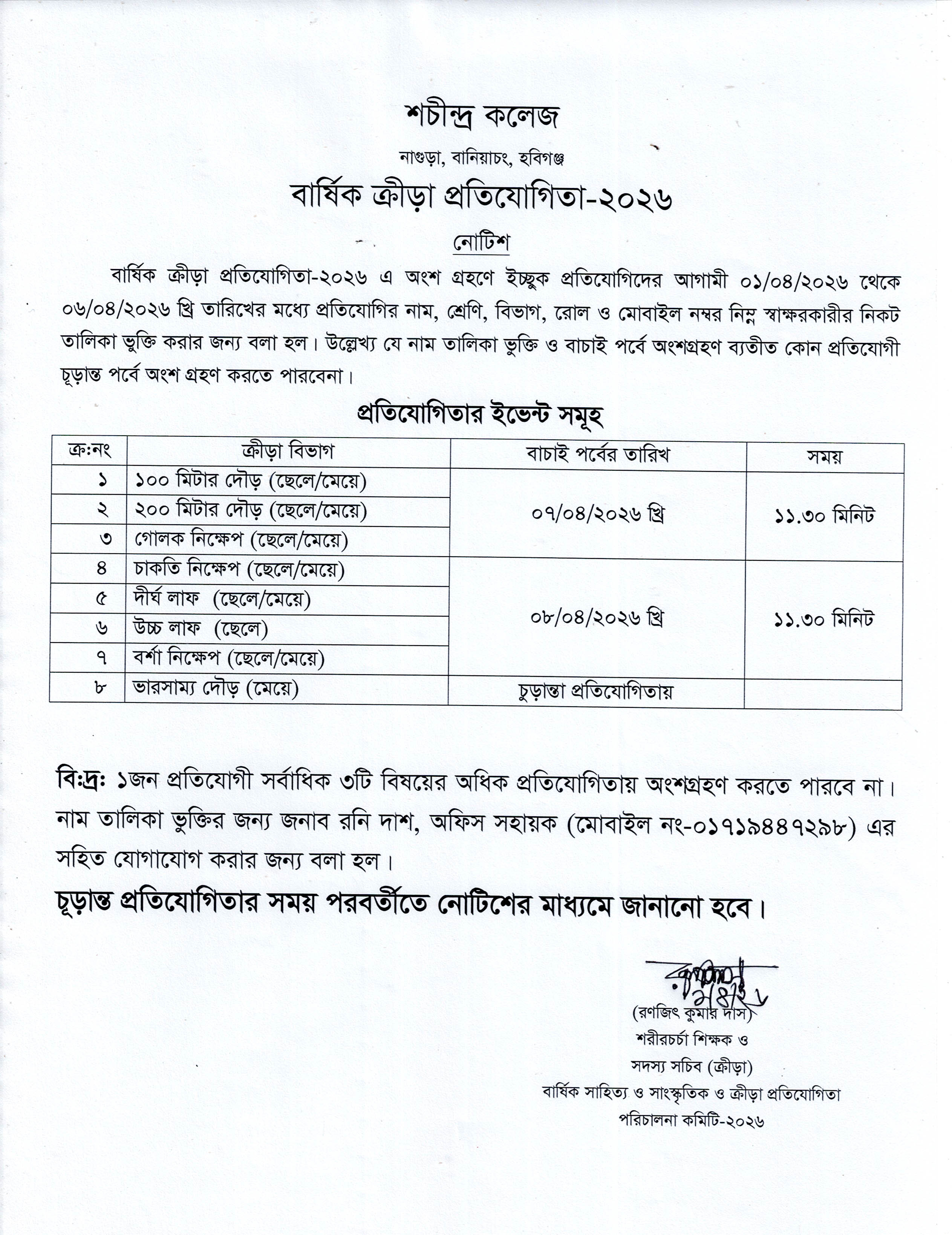বার্ষিক ক্রীড়া প্রতিযোগিতা-2026